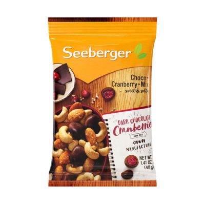 Seeberger Riekstu mais. ar dzērvenēm šokolādē 150g 278075 (4008258016008) Brends: Seeberger Izcelsmes valsts: VĀCIJA Iepakojuma svars: 0.157 kg Iepakojumā: 12 gb Paletē: 1536 gb
